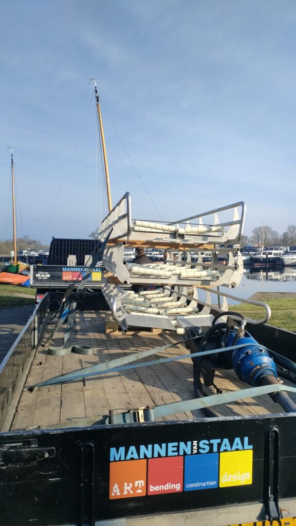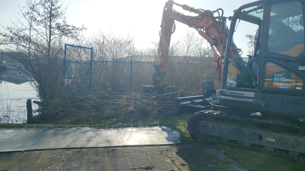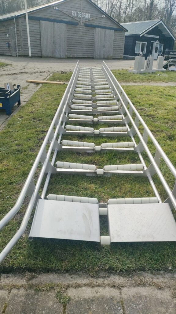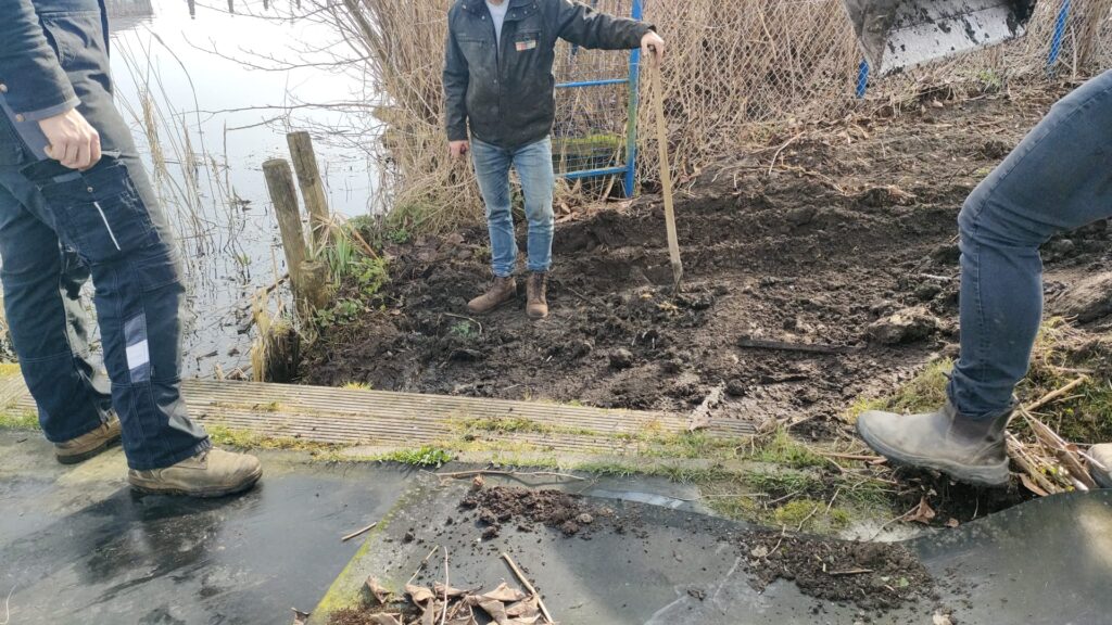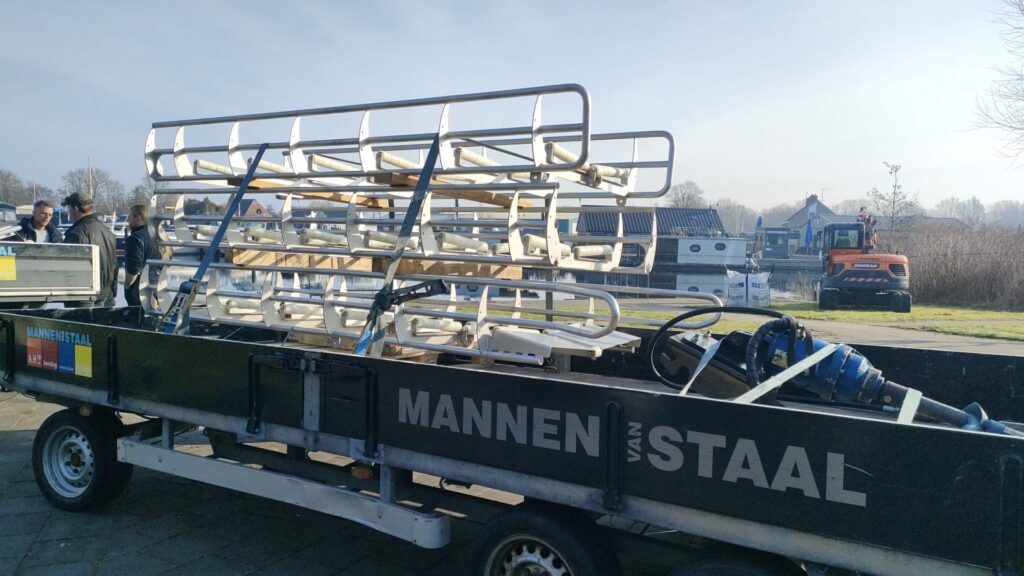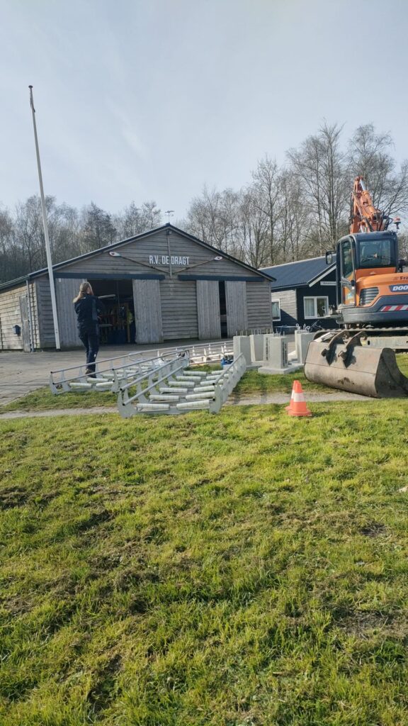 De glijgoot wordt geplaatst. Secretaris Gerrit stuurde onderstaande foto’s.